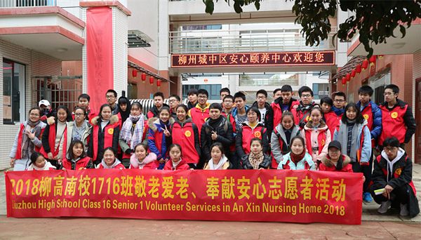 中国已进入人口老龄化快速发展期,人口老龄化是国家、社会、个人必然要面对的问题,如何破解这个难题?每个人都在寻找着答案。越来越多人开始关注和支持老年事业,给自己的孩子体验老年人生活,了解老年人心理,弘扬敬老爱老的美德,帮助孩子们过一个有意义的寒假,同时也开始为自己或父母规划未来的养老生活。2018年1月27日柳州高级中学N1716班50名志愿者在家委会和老师的支持和筹备下,来到了柳州城中区安心颐养中心,在中心一楼活动室,参加了2018红十字会走进安心颐养中心志愿者活动---急救知识培训,并带来了蛋糕、水果、糕点等,开展了“敬老爱老、奉献安心”志愿者活动暨一月份庆生会。